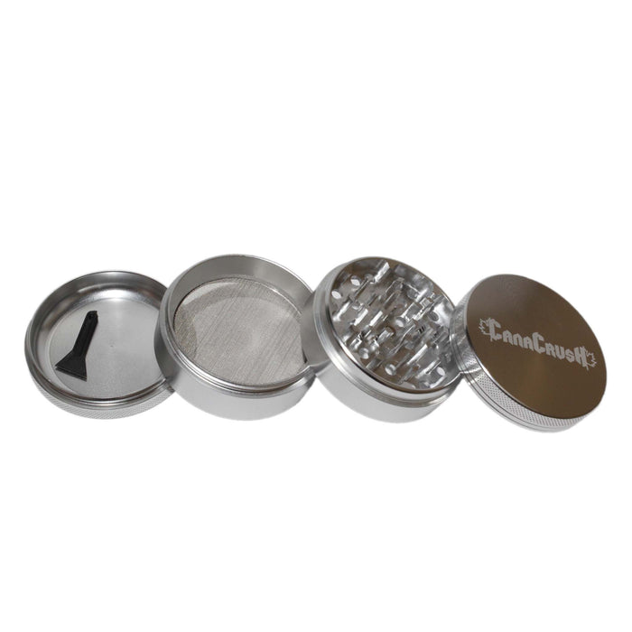 CanaCrush's four-piece, 2.5" grinder features aluminum diamond-cut teeth and grinding holes that are scratch resistant. Neodymium magnets ensure the lid stays in place and ensures odours stay locked inside. The chamber contains a micron mesh screen to filter kief.