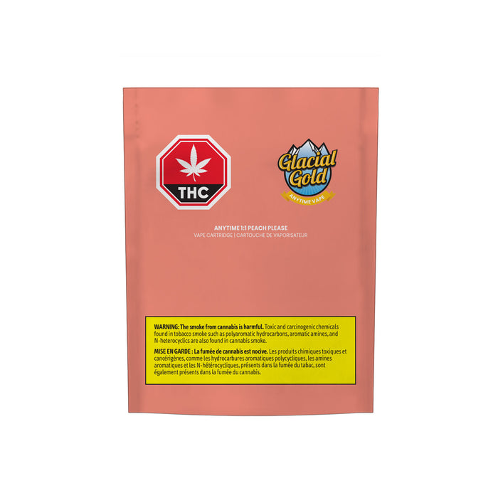 Glacial Gold Anytime 1:1 Peach Please vapes offer a balanced blend of CBD and THC, crafted with Nextleaf’s premium, high-purity distillates. Infused with refreshing botanical terpene blends, they deliver a sweet, vibrant flavour experience.