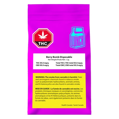 Catch the flavour of Berry Bomb, a 1.2g disposable indica vape. Consisting of distillate and botanical terpenes that is jampacked with an explosive and surprising combination of berry flavours, you might even say it's the bomb.