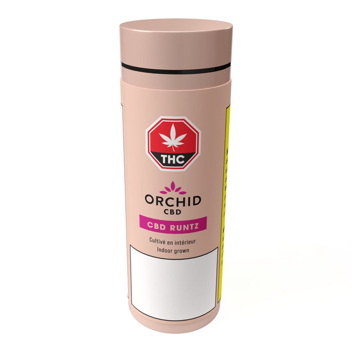 • From renowned breeder Exotic Genetix, CBD Runtz is a hybrid flower that crosses Runtz and Mystic Magic (CBD). The flower has been carefully cultivated indoors, hang-dried, hand-trimmed, and further cured to achieve optimal moisture content. CBD Runtz contains a 2:1 CBD to THC ratio with a high terpene percentage that offers a fruity and sweet aroma, and candy-like flavour. Terpenes include caryophyllene, limonene, and myrcene. CBD Runtz pre-rolls are produced with nothing but hang-dried, slow-cured, whole buds which have been consistently ground, and wrapped in premium hemp cones.