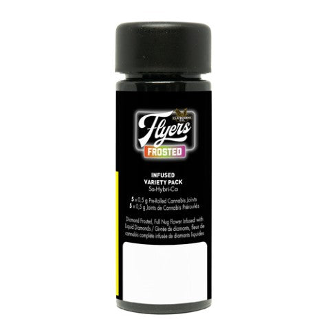 Claybourne Frosted Flyers Infused Variety Pack features five different cultivars in one pack. These five pre-rolls are THCA diamond frosted, terpene enhanced with natural flavouring agents and infused with liquid diamonds. Looking for bold flavour and a potent experience? Look no further than Claybourne Frosted Flyers.
