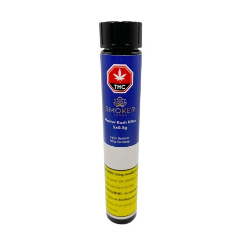 • Master Kush Ultra is a cross between G-13 and OG Kush and is a legacy cultivar. MKU's nose is woody and peppery with hints of orange or citrus. This indica-dominant cultivar is grown hydroponically with flood tables and soilless medium. Each plant is fed by the Dosatron nutrient delivery system, which results in a rich-terpene profile. The dark green flowers are hang-dried before being meticulously trimmed, ground to the perfect texture, and packed into a perfect ready-to-smoke pre-roll. Expect a one-of-a-kind taste and a smoke that is absolutely loaded with THC. This was a favourite cultivar in BC that went by Certified Gas.