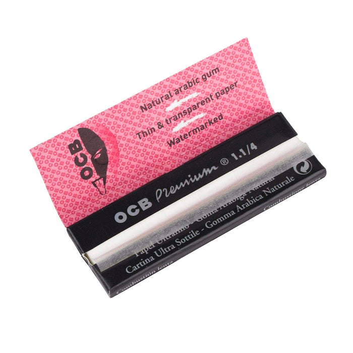 • OCB Premium black rolling papers come in a pack of 50 and are 1¼“ long. Made with all-natural acacia gum and packaged in a black booklet.