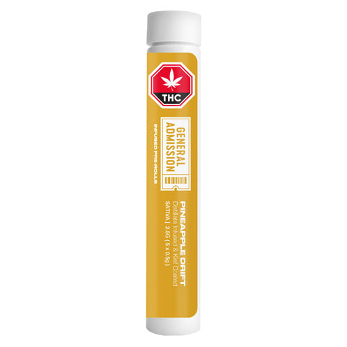 Surf’s up! Pineapple Drift is a riptide of bold pineapple. Get drenched in tropical flavour that hits as hard as a tidal wave. Made with milled, whole flower, infused with their signature triple-distilled distillate, dusted in kief, and boosted with botanical terpenes – these infused pre-rolls deliver smooth hits, high-THC potency, and the BIG, BOLD flavour you expect from G.A.!